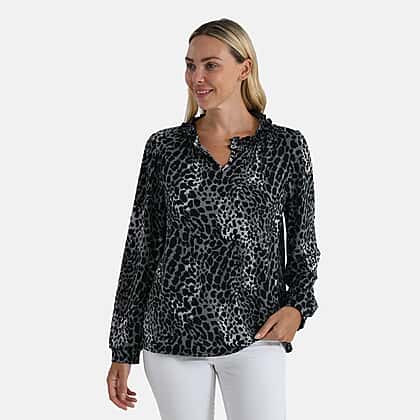 Whether your calendar is packed with holiday parties or you are just looking for a new top to wear, the La Marey jersey blouse is perfect to suit your every aesthetic. Made with a lightweight fabric, this blouse feels extremely soft and comfortable against the skin. It features animal-printed design and black, white, and grey tones that helps add a punch to the design. This blouse comes with full-length sleeves and features a notch neckline with a split detail. This top is perfect to help you seamlessly transition from weekdays to weekend mood.