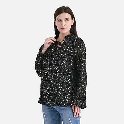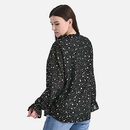 La Marey Gold Foil Star Pattern Crepe Blouse (Size S, 8 to 10) - Black