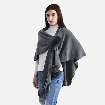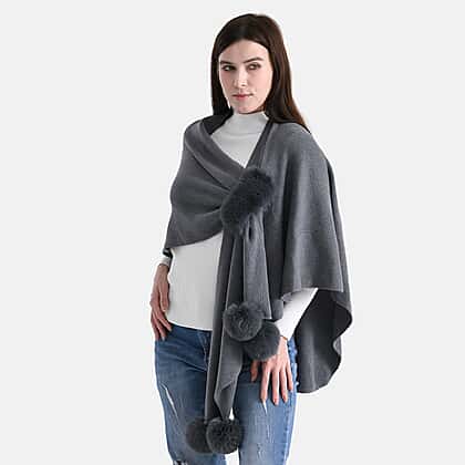La Marey Super Soft Faux Fur Trim Shawl (145 x 100cm) - Grey