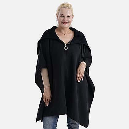 La Marey Zippered Poncho (One Size) - Black