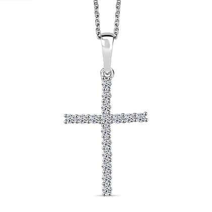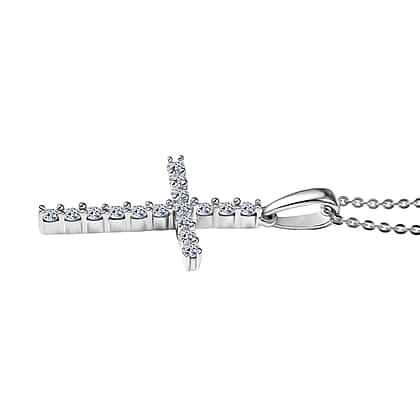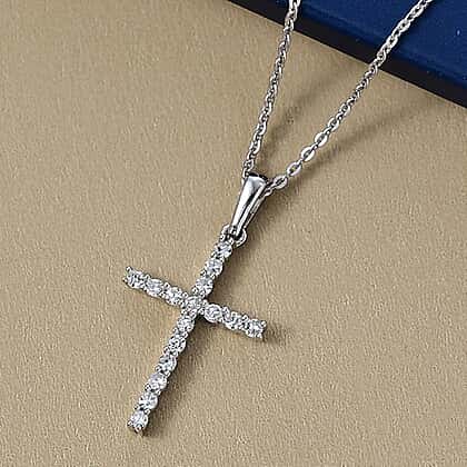 Luxuriant Lab Grown Diamond (SI-GH) Cross Pendant with Chain (Size 20) in Rhodium Overlay Sterling Silver 0.50 Ct.