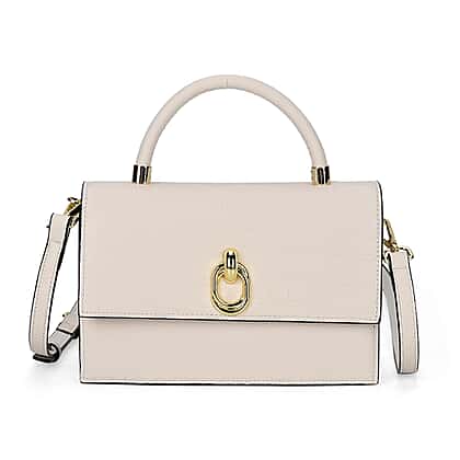 Designer Closeout - Genuine Leather Croc Embossed Crossbody Bag - Off White