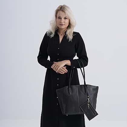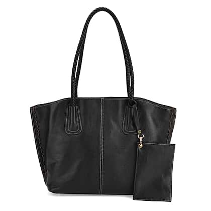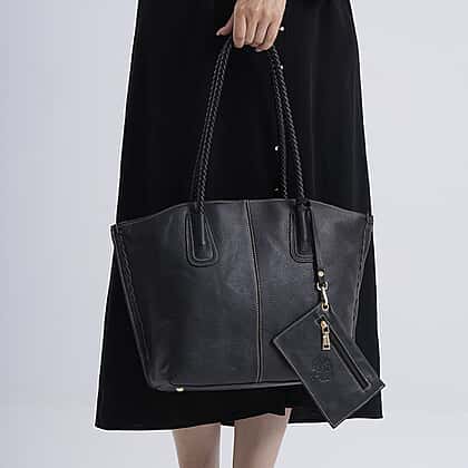 Genuine Leather Tote Bag (31.5cm) with Matching Detachable Coin Purse - Black