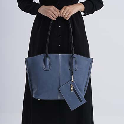 Genuine Leather Tote Bag (31.5cm) with Matching Detachable Coin Purse - Blue