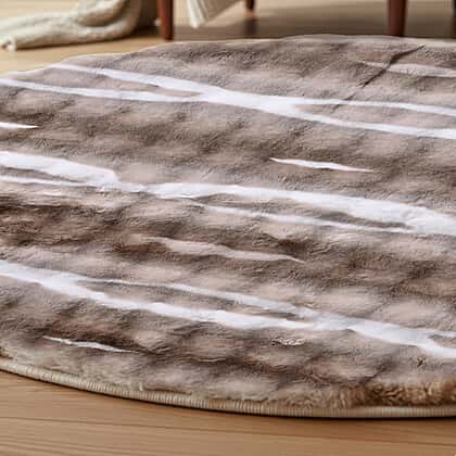 LIVMORE Luxury Collection - Faux Fur Bubble Pattern Round Rug with Foam Base (120cm Diameter) - Brown & White