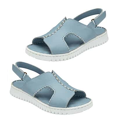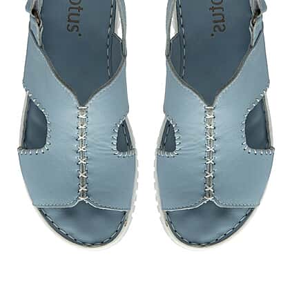 Experience the perfect blend of comfort, craftsmanship and versatility with the Lotus Astrid leather slingback sandals. Crafted with a soft leather upper, this women's pale blue sandal showcases an elegant cut-out design enhanced by contrasting decorative blanket stitching for a touch of handcrafted charm. A cushioned footbed and soft lining ensure every step feels as good as it looks, keeping you comfortable from day to night. The adjustable rip-tape slingback strap offers a secure, personalised fit, while the low 2.5cm heel provides just the right amount of lift for everyday wear or special occasions alike, making it a versatile addition to your wardrobe.