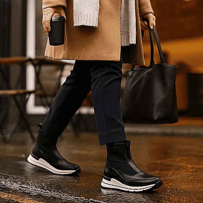 Redefine casual style with the Lotus Petra Ankle Boots, blending the sporty comfort of a trainer with the chic silhouette of an ankle boot. Crafted with faux leather and textile, this black boot boasts a sleek, modern aesthetic. The convenient front zip adds a contemporary edge and ensures effortless wear. The Petra ankle boot features a subtle 3.5cm wedge heel, providing all-day comfort without compromising style. Perfect for elevating your off-duty looks, this versatile footwear option is a must-have for fashion-forward wardrobes.
