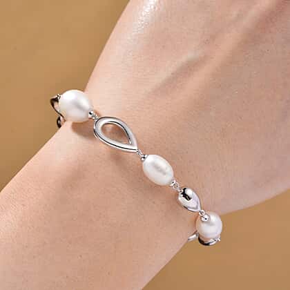 Bring this nature’s beauty to your wardrobe collection with this bracelet, featuring freshwater pearls in a teardrop design and linked with a sleek silver teardrop design. Meticulously crafted in rhodium overlay over 925 sterling silver, this bracelet ensures durability and enduring shine. The hypoallergenic nature of the metal makes the piece safe and secure for sensitive skin. The pearl offers natural lustrous shine that beautifully drapes around your wrist. Experience the beauty of Lucy Q's pearl drop collection with this bracelet, a striking blend of artistry and refined beauty. Features a secure lobster clasp for security and comfort fit, allowing you to wear it throughout the day.