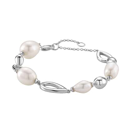 LUCY Q Pearl Drop Collection - Fresh Water Pearl Bracelet (Size - 8) with Lobster Clasp in Rhodium Overlay Sterling Silver 23.14 Ct, Silver Wt. 9.20 Gms.