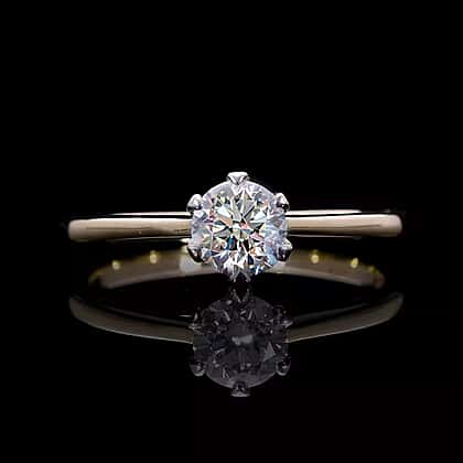 • Six-Prong setting lends the faceted Diamond Round a hexagonal silhouette