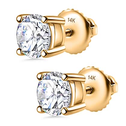 LUXURIANT 3 Ct. Lab Grown Diamond Solitaire Stud Earrings with Screw Back in 14K Yellow Gold IGI Certified