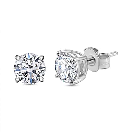 Luxuriant 14K White Gold SGL Certified Lab Grown Diamond (VS-EF) Solitaire Earrings with Screw Back 2.00 Ct.