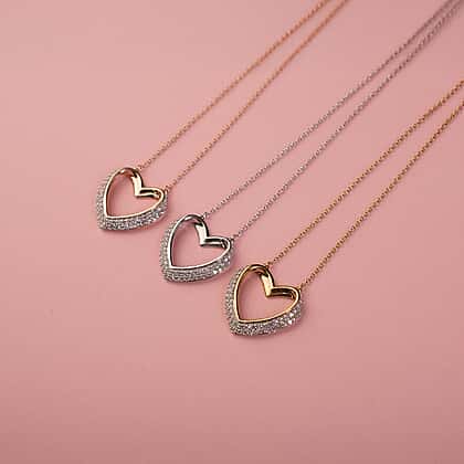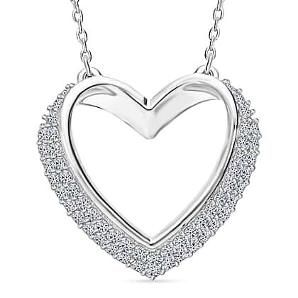 LUXURIANT Lab Grown Diamond (SI/G H) Heart Pendant with Chain (Size 18+2 Ext.) with Spring Ring Clasp in Rhodium Overlay Sterling Silver 0.33 Ct.