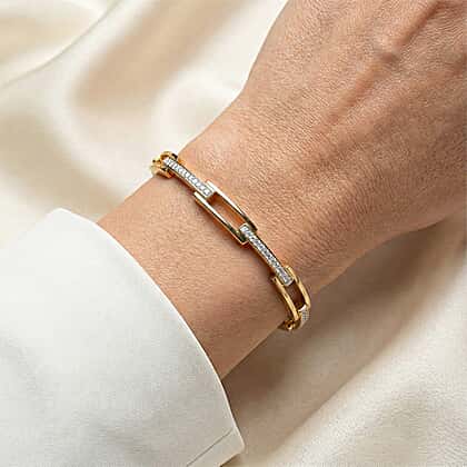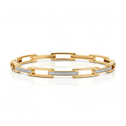 LUXURIANT Lab Grown Diamond Openable Eternity Link Bangle in 18K Vermeil Yellow Gold Over Sterling Silver 7.5 Inch