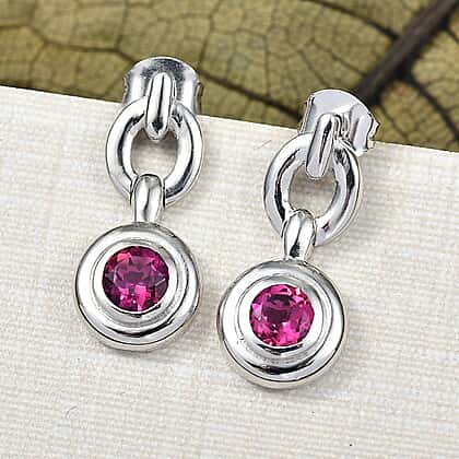 Presenting a pair of dangling earrings in a classic drop design with the rich, berry-toned hue of lab-grown bixbite. The open link design creates gentle movement, allowing the gemstone to catch the light with every turn. Finished in premium platinum overlay on 925 sterling silver, the warm metal tone beautifully complements the stone's colour while offering an effortless, wearable elegance for day or evening. A graceful style with a refined pop of colour, ideal for those who prefer jewellery with soft movement and a polished finish.