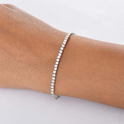 LUXURIANT 1 Ct. Lab Grown Diamond Tennis Chain Bracelet (Size - 7.5) with Lobster Clasp in Rhodium Overlay Sterling Silver (SI/GH)