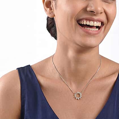 LUXURIANT 0.5 Ct. Lab Grown Diamond Bubble Circle Necklace (Size - 20) in Rhodium Overlay Sterling Silver