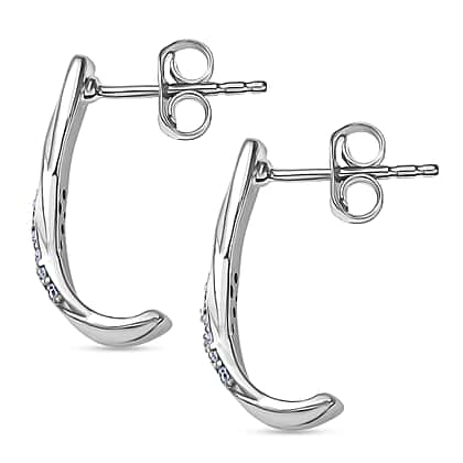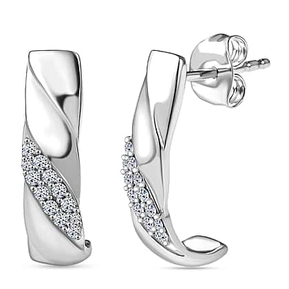 LUXURIANT Lab Grown Diamond J Hoop Half Hoop Earring in Rhodium Overlay Sterling Silver 0.26 Ct.