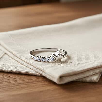 Inspired by the beauty of the celestial world, this Luxuriant lab grown diamond ring beautifully infuses the beauty of starlit night into the designs. Crafted in rhodium overlay sterling silver, it features a delicate row of lab-grown diamonds on one side. This graceful row of shimmering diamonds leads to a sculpted silver star design, adding a touch of celestial charm to the design. This ring is perfect for those who want to add a whimsical touch to their look. It can inspire the wearer to keep shining bright and believe in themselves.