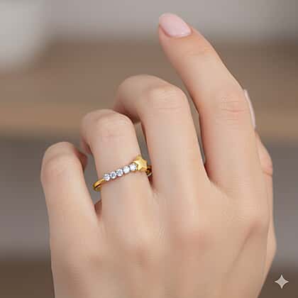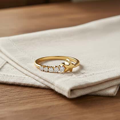 Inspired by the beauty of the celestial world, this Luxuriant lab grown diamond ring beautifully infuses the beauty of starlit night into the designs. Crafted in 18K vermeil yellow gold plated sterling silver, it features a delicate row of lab-grown diamonds on one side. This graceful row of shimmering diamonds leads to a sculpted golden star design, adding a touch of celestial charm to the design. This ring is perfect for those who want to add a whimsical touch to their look. It can inspire the wearer to keep shining bright and believe in themselves.