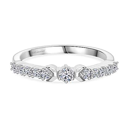 A modern take on half-eternity ring, this Luxuriant lab grown diamond ring makes for a sight to behold! It features a row of round lab-grown diamonds that taper gracefully toward the centre. At the heart lies a single, larger diamond, flanked by arched sculpted prongs. Crafted in rhodium overlay sterling silver, it features a sleek shank. This ring is perfect for those who are looking for pieces that balance classic and modern sensibilities with equal panache.