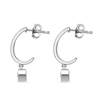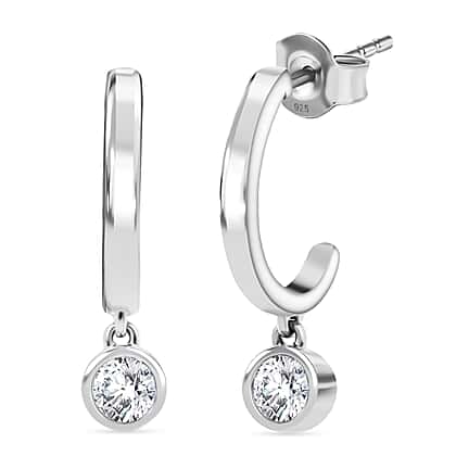 LUXURIANT 0.50 Ct. Lab Grown Diamond Solitaire Half-Hoop Earring with Push Back in Rhodium Overlay Sterling Silver (SI-GH)