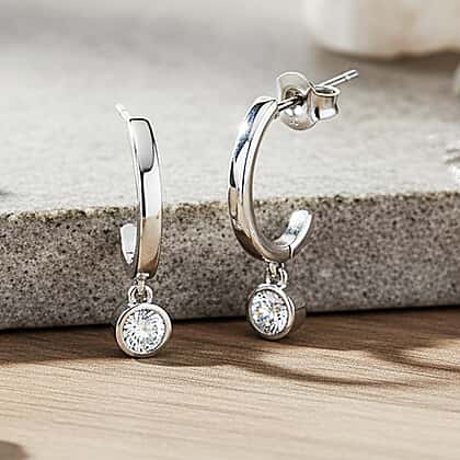- Designed with a sleek half-hoop silhouette and a solitaire drop