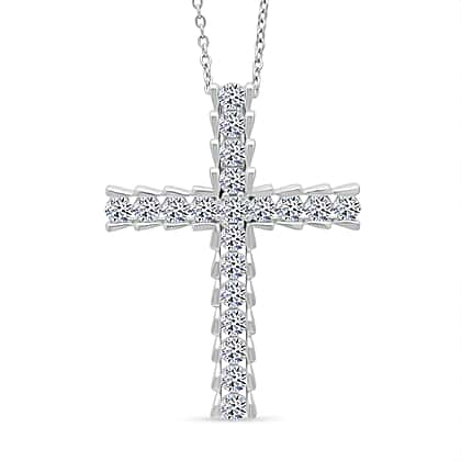 NY Close Out Deal - Luxuriant Lab Grown Diamond (SI-GH) Cross Pendant with Chain (Size 18-20) in Rhodium Overlay Sterling Silver 1.00 Ct.