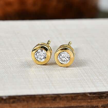 LUXURIANT 0.49 Ct. Lab Grown Diamond Solitaire Stud Earring with Screw Back in 18K Vermeil Yellow Gold Plated Sterling Silver (SI-GH)