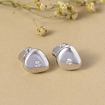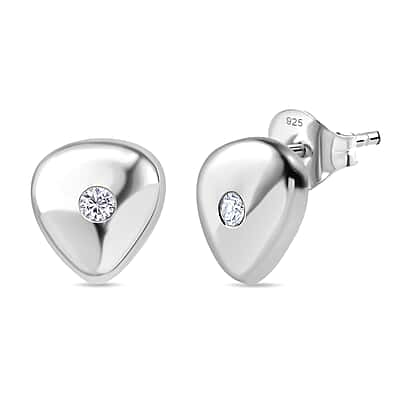 Minimal yet beautifully distinctive, these stud earrings feature a smooth organic heart-like design finished in rhodium overlay over 925 sterling silver. A single lab-grown diamond sits at the centre, offering a soft, modern sparkle that feels understated and refined. Lightweight and hypoallergenic, the piece is comfortable for sensitive skin and easy to wear all day. They bring a subtle touch of everyday styling, perfect for casual styling or as a polished finishing detail.