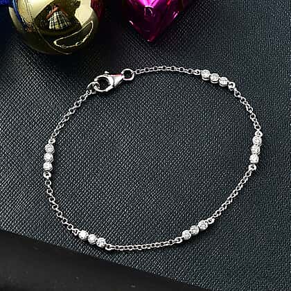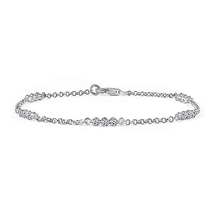 LUXURIANT 1 Ct. Lab Grown Diamond Station Bracelet (Size 7.5) in Rhodium Overlay Sterling Silver (SI-GH)
