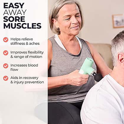Designed for everyday comfort, this MightyMitts massage gun helps ease tightness after workouts or long days, offering deep-tissue support for the back, calves, and more. Its compact 365g build delivers 12–15 kgf stall force and a 6mm amplitude, giving powerful relief while staying incredibly easy to hold. Six quiet 50dB speeds (1500–3000 RPM) let you move from gentle recovery to firmer pressure, supported by four heads for round, flat, fork, and bullet use. The ergonomic grip minimises wrist strain, and the long-lasting battery provides up to two hours of soothing, circulation-boosting comfort at home or on the go.
