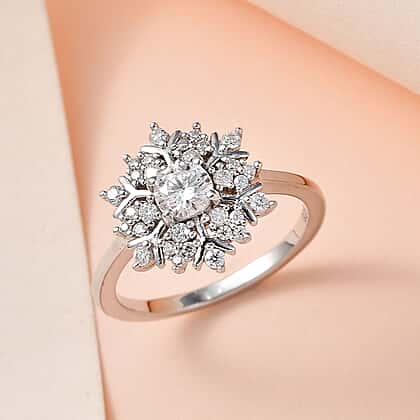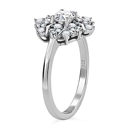 Indulge in a touch of wintry elegance with our moissanite cluster ring. Lovingly set in platinum overlay sterling silver, this striking piece captures the enchanting beauty of a snowflake. Each Moissanite stone sparkles with a fire and brilliance that rivals even diamonds, making it an exquisite choice for those who appreciate timeless luxury. Its intricate design, reminiscent of nature's delicate patterns, ensures that this ring isn't just a piece of jewellery but a statement of artistry.