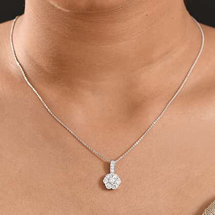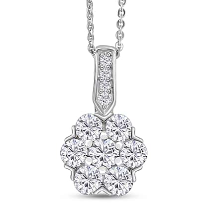 Bringing the brilliance of moissanite to you with this stunning pendant, featuring dazzling round-cut moissanite stones in an intricate cluster design. The moissanite gemstone is known for its extraordinary shine and brilliance that captures light from every angle. Crafted from hypoallergenic 925 sterling silver, this piece ensures durability and comfort for the skin. The platinum overlay on sterling silver offers a lustrous finish, and the secure lobster clasp provides a comfort fit.  Ideal for special occasions and gifting to your loved ones, this pendant embodies sophistication and grace.