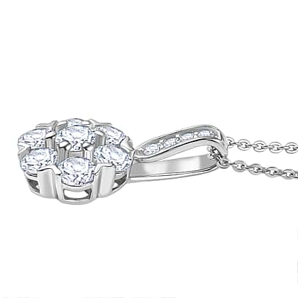 Moissanite Pendant with Chain (Size 20) in Platinum Overlay Sterling Silver 1.04 ct