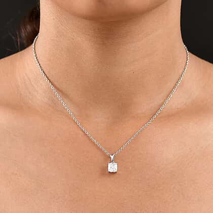 D'Joy Moissanite Asscher-Cut Solitaire Pendant with Chain (Size 20) in Platinum Overlay Sterling Silver 1.16 Ct.