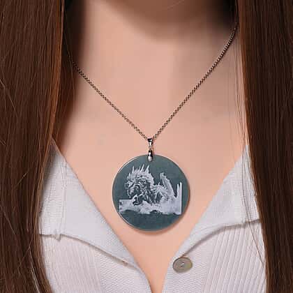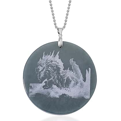 Wow! That is the first expression that will register on your face when you take a look at this big sized Natural Olmec Jadeite Jade Dragon Pendant. This Exclusive Edition jewellery features a disc shaped Jadeite showcasing an artistically crafted dragon in the wilderness. in Rhodium Overlay Sterling Silver