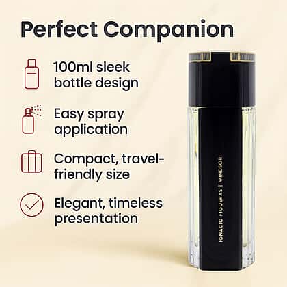 Experience elegance reimagined with Windsor Ignacio Figueras Unisex Eau de Parfum – a timeless fragrance that speaks to confidence and quiet sophistication. Opening with crisp bergamot, aromatic French clary sage and spicy cardamom, it unfolds into a soft floral heart of English honeysuckle, osmanthus, geranium, and orris. The dry down lingers with warm atlas cedarwood, luxe saffiano, soft leather, and rich amber, leaving a refined yet inviting scent trail. Encased in a sleek bottle perfect for display, this unisex perfume is a statement in versatility, artistry, and fine craftsmanship. Designed for those who seek elegance without boundaries, this scent feels both modern and eternal.