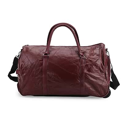 Patchwork Leather Travel Bag with Trolley - Burgundy
