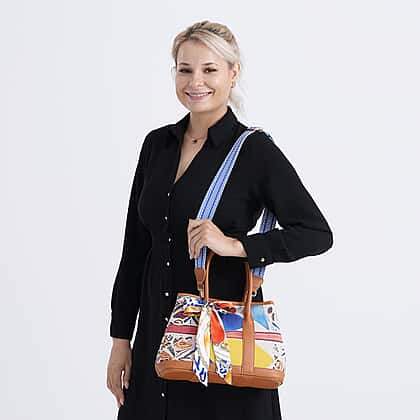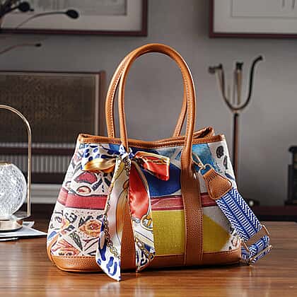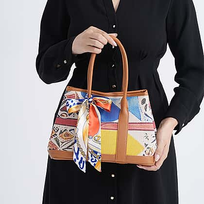 Trendy Graffiti Tote Bag with Mini Pouch - Yellow - Brown