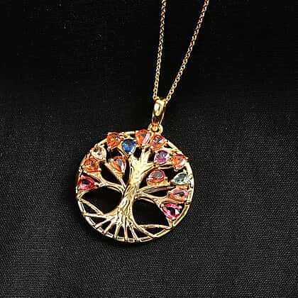 Rainbow Sapphire Pendant with Chain (Size 20) in Yellow Gold Plated Sterling Silver 2.78 Ct.