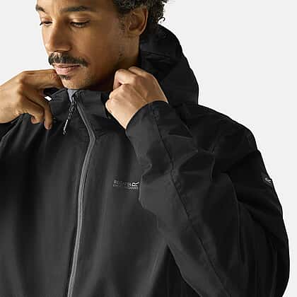 Regatta Mens Waterproof Jacket with Detachable Hood and Zipped Pockets (Size M) - Black