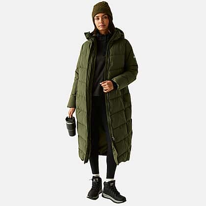 Regatta Womens Longline Quilted Insulated With Hood and Seam Snaps