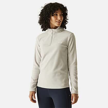Choose the Regatta women’s sweethart lightweight half-zip fleece in cyberspace, a contemporary grey tone that blends style with practicality. Built from 170gsm Symmetry fleece, it features a brushed lining that feels soft against the skin and an anti-pill exterior that resists wear. The half-zip neck makes it easy to cool down or warm up, adapting to your activity. With 20% of the fabric sourced from recycled polyester, it’s designed with sustainability in mind. Quick to dry, easy to care for, and light to pack, it’s a dependable layer for everything from countryside strolls to casual days.