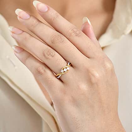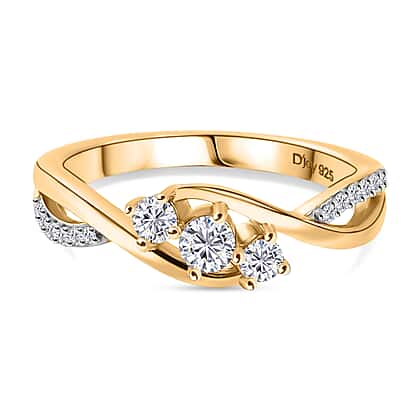 Royal Bali Collection - D'Joy Moissanite Trilogy Ring in 18K Vermeil Yellow Gold Plated Sterling Silver