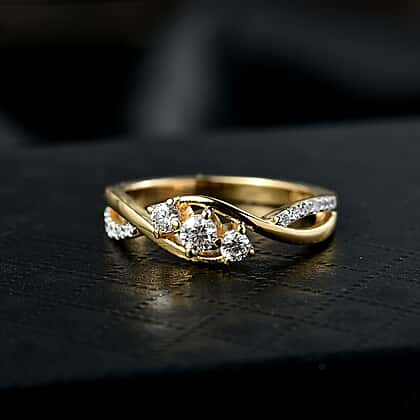 Celebrate refined beauty with this moissanite trilogy ring, crafted to symbolise balance and continuity through its three-stone setting. The central stones are complemented by a flowing band that curves gorgeously, creating a sense of movement and fluidity. Each moissanite reflects light with clarity, adding a refined sparkle without overwhelming the design. Made from sterling silver with 18K vermeil yellow gold plating, this ring offers lasting shine and durability. The warm yellow gold finish enhances the overall look, making it suitable for both everyday wear and special occasions. Its thoughtful design offers a blend of modern styling and timeless appeal.