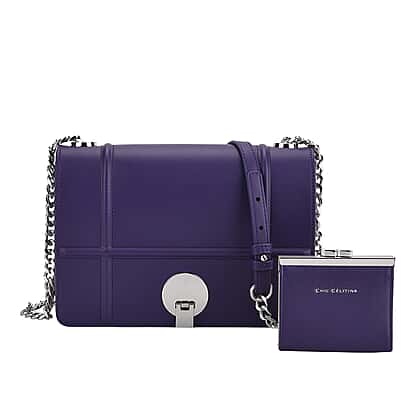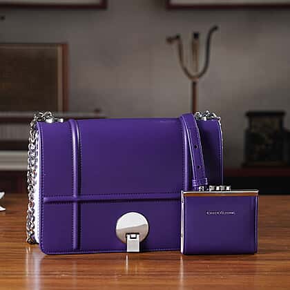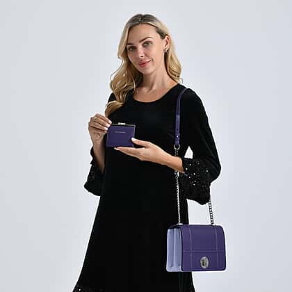Set of 2 Structured Panel Bag with Silver Chain Strap & Matching Card Slot Purse - Purple & Lilac