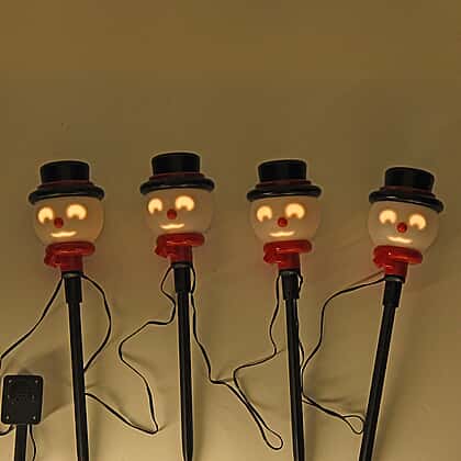 Set of 4 Musical Snowman Decorations with Sensor - LED Lighting - White - Red