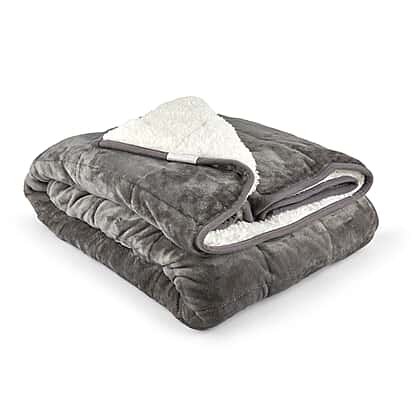 Weighted 6.9KG Fluffy Sherpa Fleece with a Soft and Smooth Plush Fleece Reverse (Size 150x203 cm) - Grey