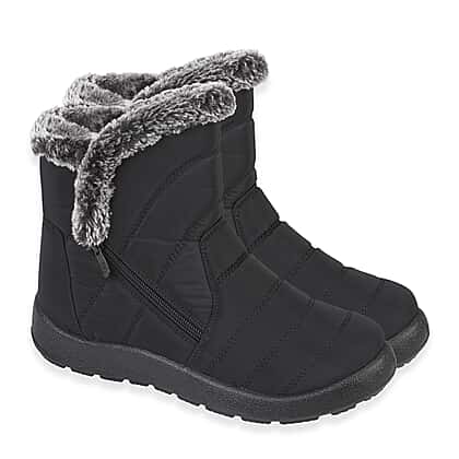 Shoetree Comfort Ladies Hawthorn Quilted Faux-Fur Lined Ankle Boots With Side Zip (Size 4) - Black